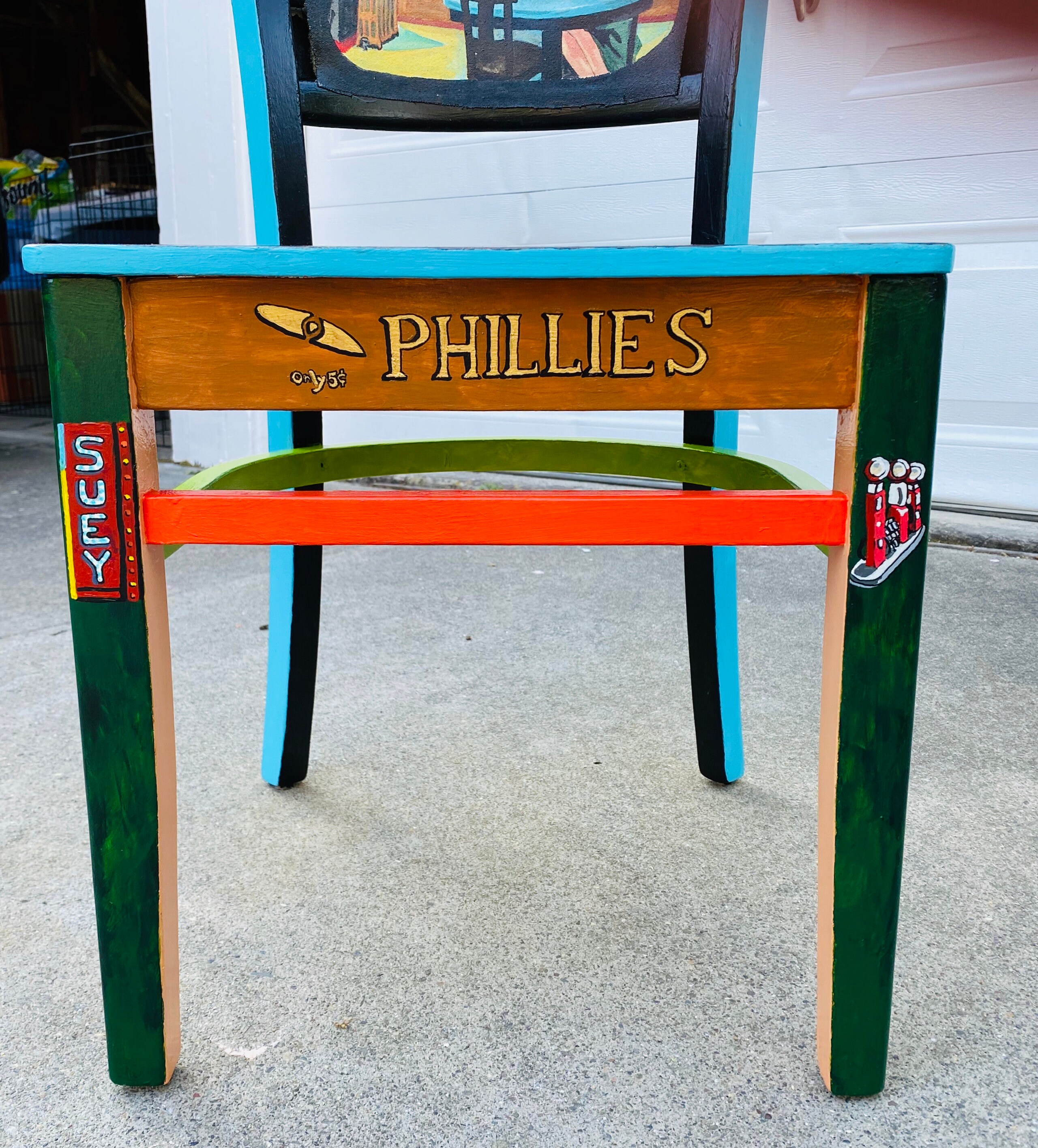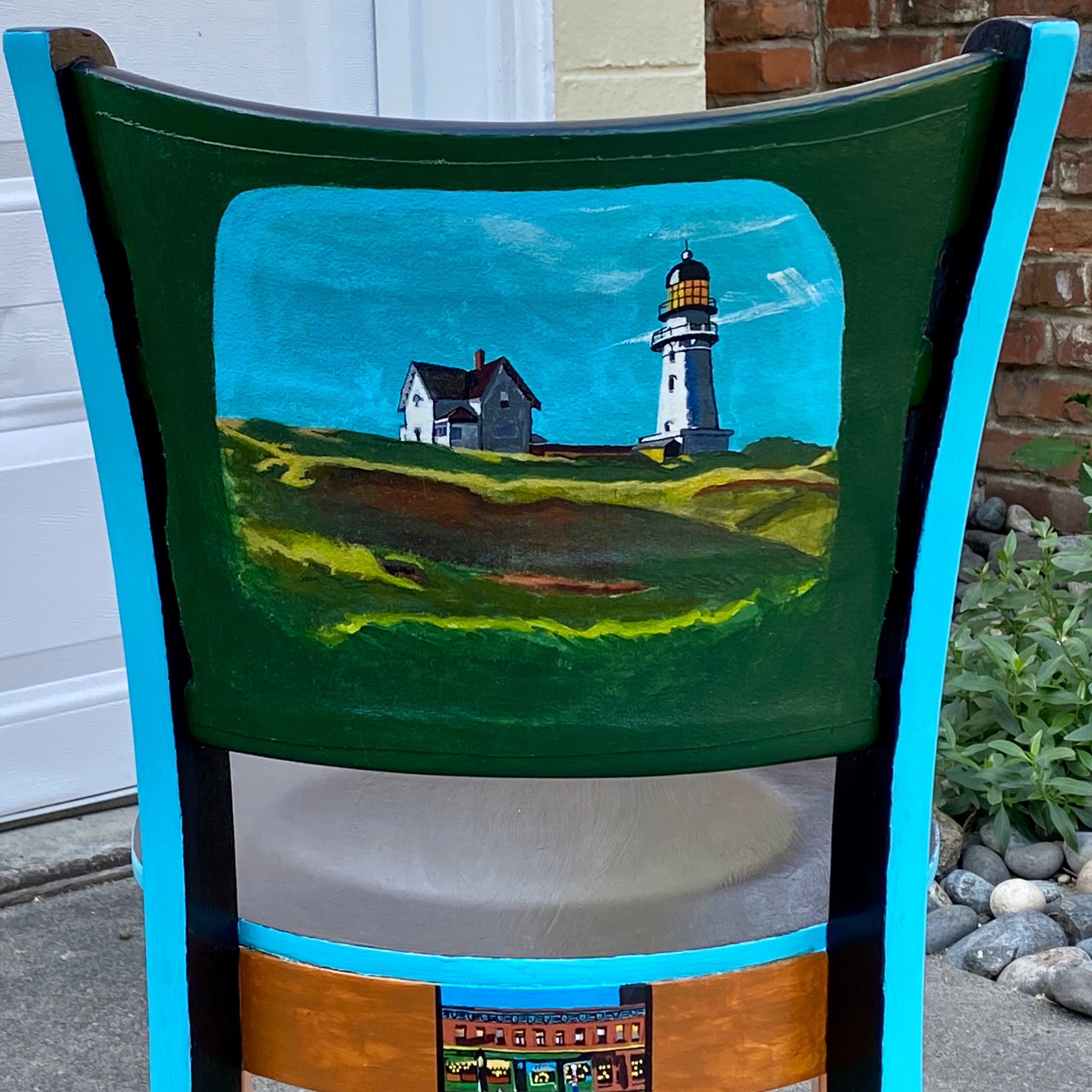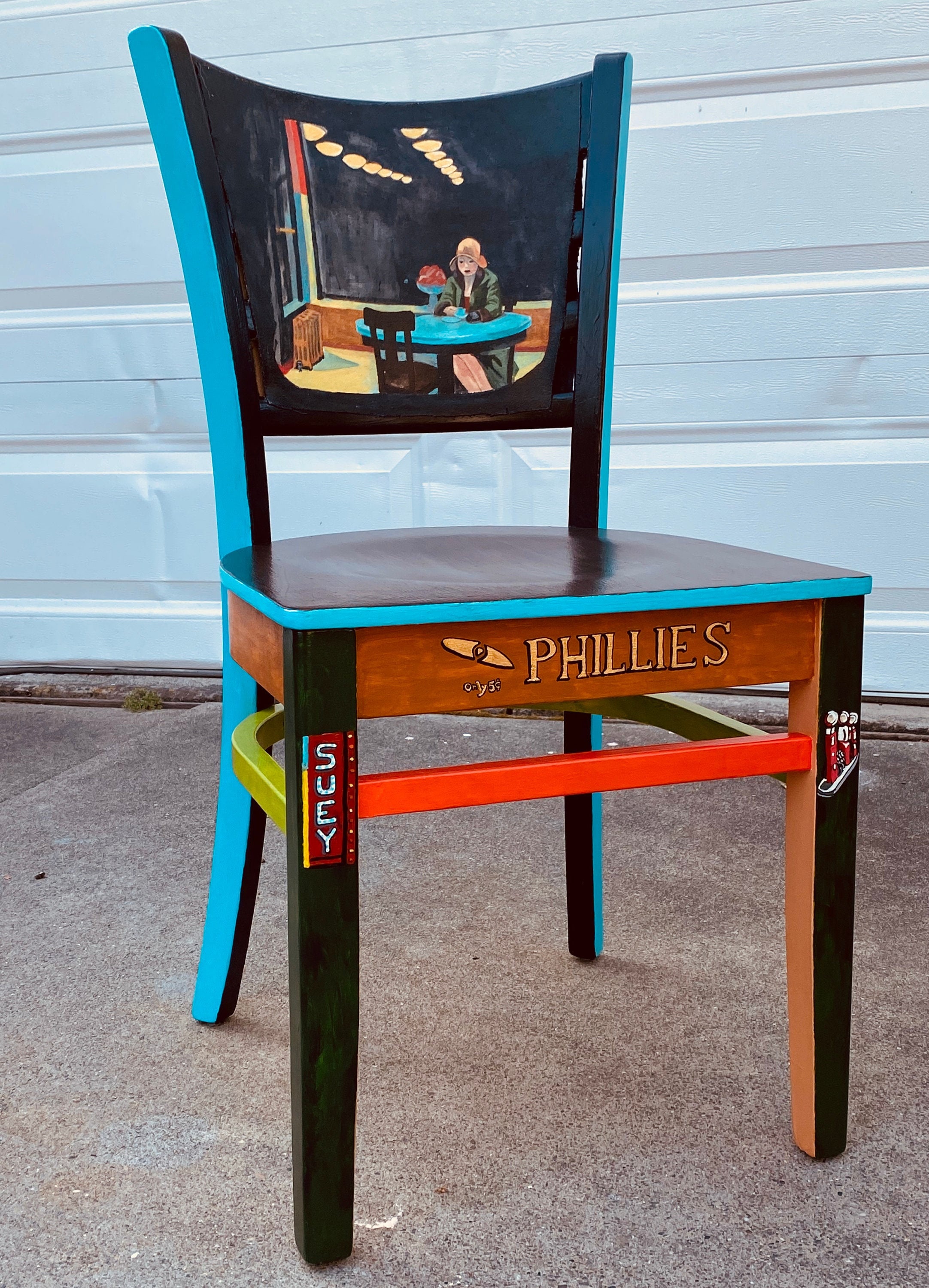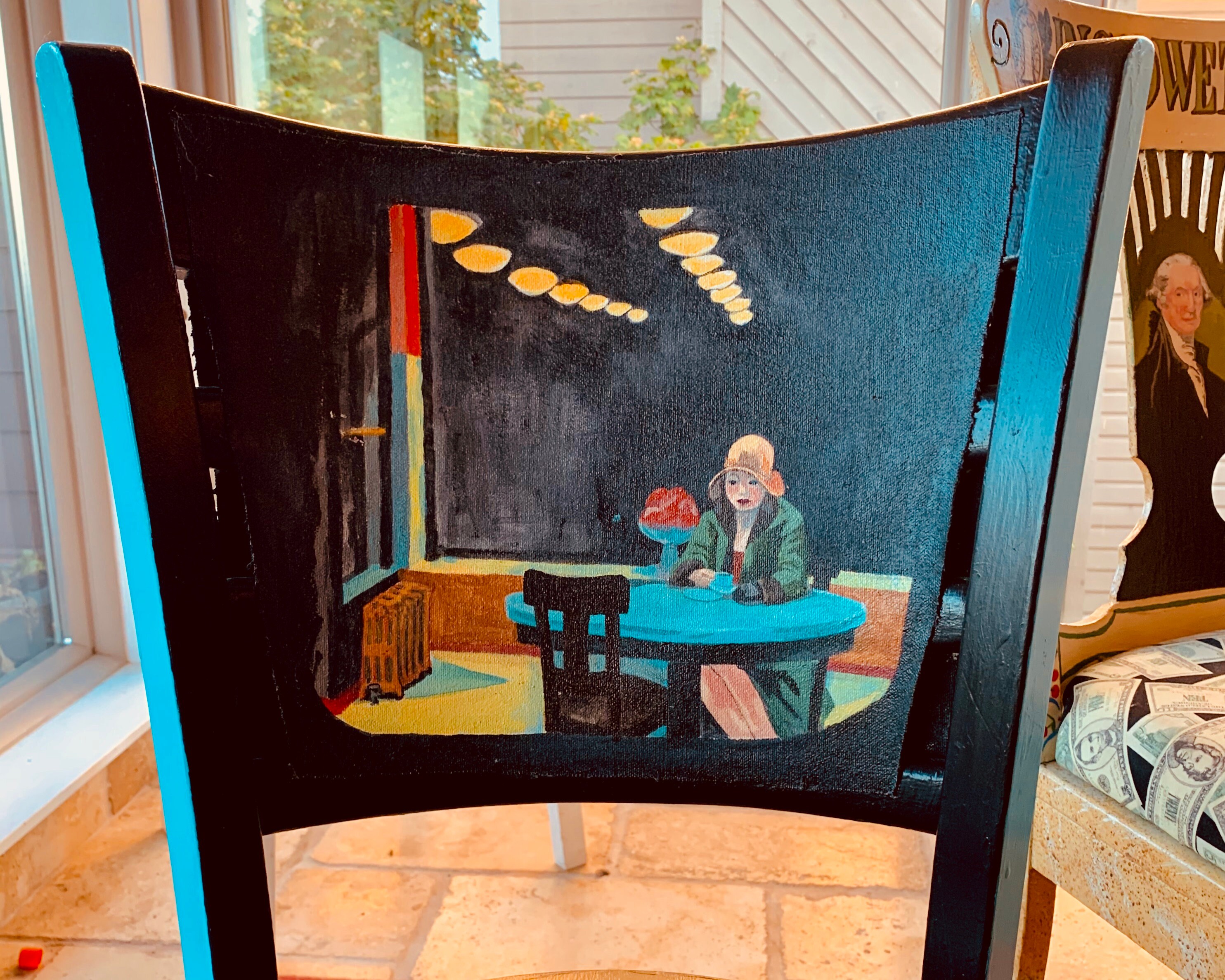 This chair was commissioned by a big fan of Edward Hopper. (So am I.) The heavy chair is from a school library.